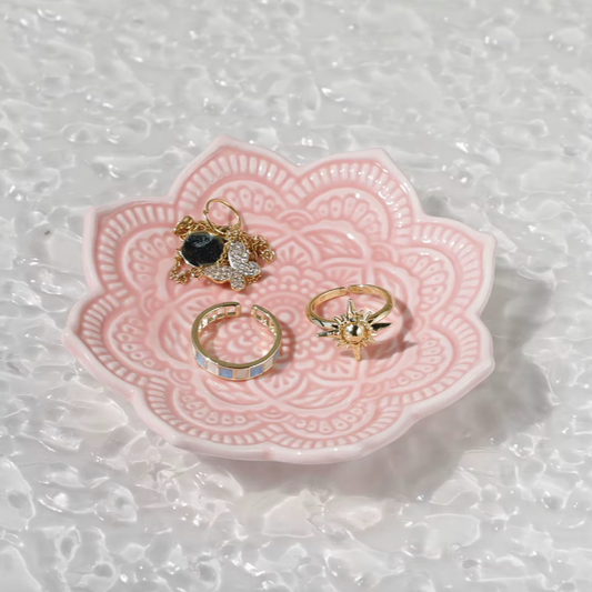 Blue Flower Mandala Ceramic Ring Dish – Jewellery Holder & Trinket Tray