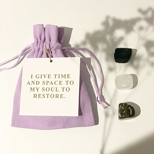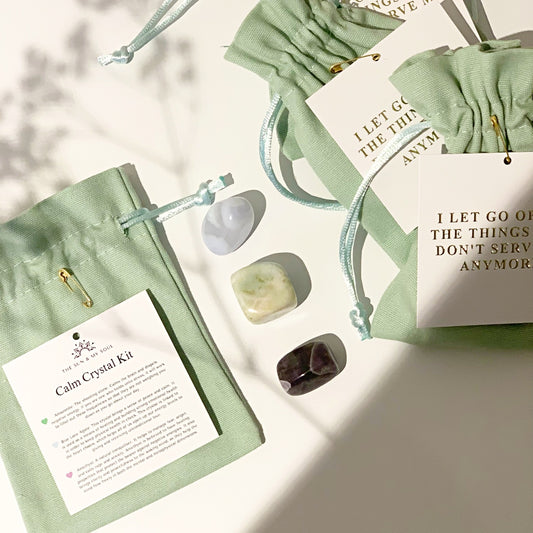 Calm Crystal Kit with Affirmation Card - Set of 3 Crystals (Amazonite, Amethyst, Blue Lace Agate)