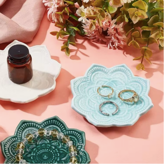 Blue Flower Mandala Ceramic Ring Dish – Jewellery Holder & Trinket Tray