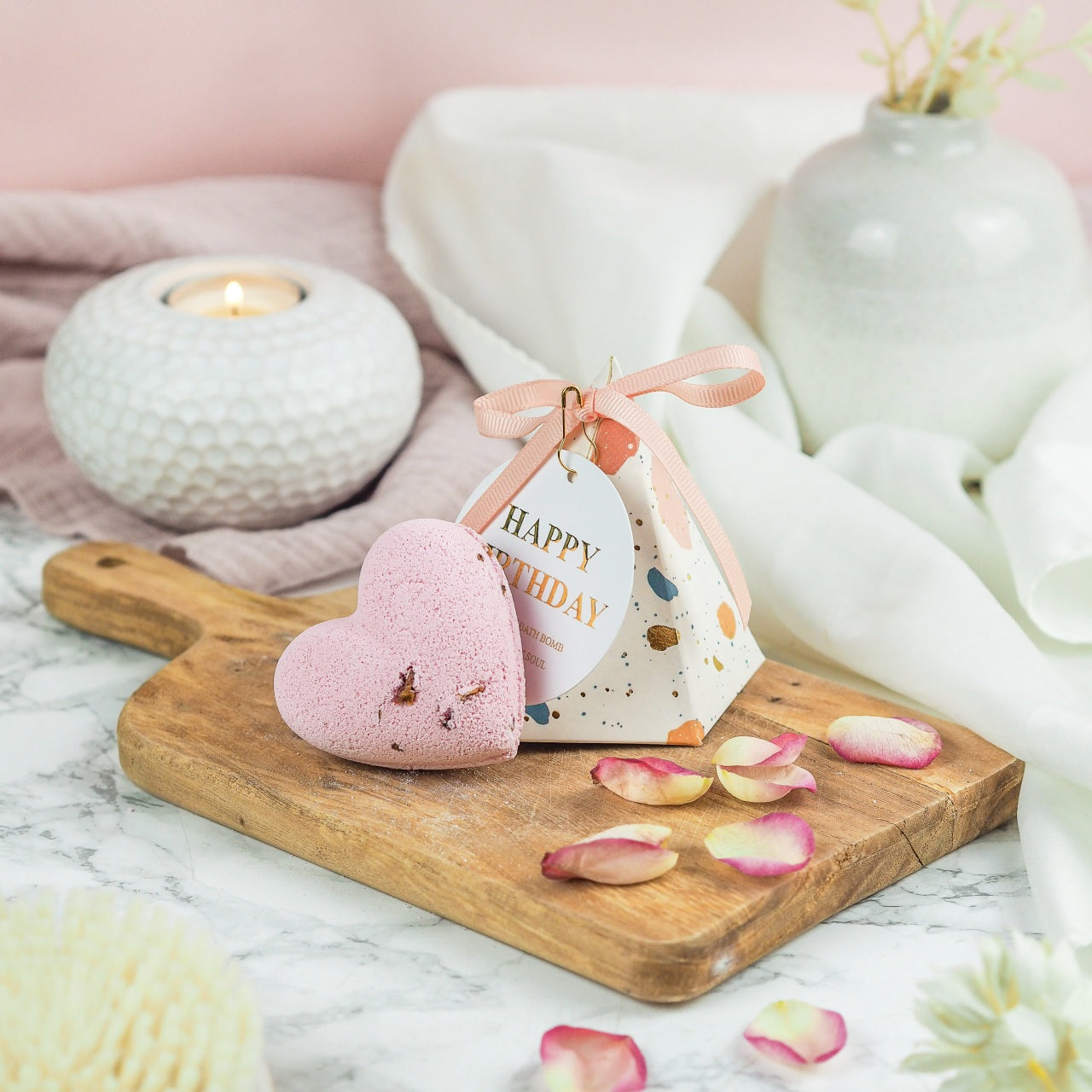 Make every bath a celebration with our Happy Birthday Rose Heart Shaped Bath Bomb. Transform ordinary moments into extraordinary ones with its romantic charm.