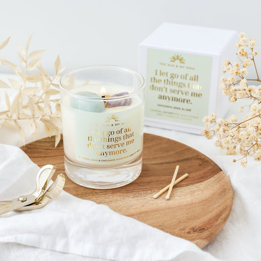 Calm Affirmation Crystal Candle with Amazonite & Amethyst, Scent - Mandarin, Basil, Lime